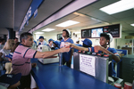 Vendors are seen selling concessions at Arlington Stadium during a Texas Rangers baseball game.