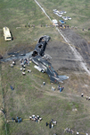 Aircraft accidents; Debris; Rescue workers; Aerial views
