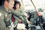 Miss Texas, Cathy Castro, tours the cockpit of an Air Force KC-135 tanker at Carswell Air Force Base with the plane's pilot, Capt. Ken Kovarik. The aircraft was named Miss Texas, in honor of the pageant, with Castro's name put near the nose.
