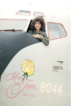 Miss Texas, Cathy Castro, is seen from an Air Force KC-135 tanker cockpit window at Carswell Air Force Base. The aircraft was named Miss Texas, in honor of the pageant, with Castro's name put near the nose next to a yellow rose embellishment.