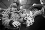 Visually impaired children get to pet a rabbit at the Stock Show in Fort Worth; outing sponsored by public schools, Lighthouse for the Blind, Southwestern Bell, and Coca-Cola Company, 02/02/198