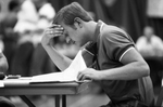 Image shows Bob McComb, a transfer student from the University of Cincinnati, is planning his strategy for classes before classes begin at UT Arlington. Published in Fort Worth Star-Telegram morning edition August 27, 1983.