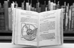 Image shows a copy of The Cosmograph, a navigational guide that includes maps of the New World. The book is located in the Special Collections division at The University of Texas at Arlington's Library. Published in Fort Worth Star-Telegram evening edition October 19, 1983.