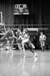 University of Texas at Arlington goes up against other basketball teams from Canada and Bulgaria in an exhibition-style game. Bulgaria goes onto win against UTA 90-86 at the game in Texas Hall. Image of Sam Norton (#33) running down court with the ball during a men's basketball game at UTA's Texas Hall against the Bulgarian national basketball team. Published in Fort Worth Star-Telegram morning edition November 18, 1983.