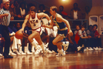 UT-Arlington guard Danny Wojciak steals the ball from Texas A&I's Gary Gray during the game at Texas Hall. UTA won over Javelinas 69-64. Published in Fort Worth evening edition November 92, 1983.