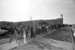 A large crowd of fans gathered to attend wrestler David Von Erich [David Adkisson]'s funeral held at the First Baptist Church in Denton, TX.