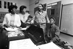 Image shows Jubilee founder Rudy Eastman, second from right and Regina Blumfield, second from left, Donna Williams, left and Charles Barnes, right rehearse for a upcoming production of "Prodigal". Published in Fort Worth Star-Telegram morning edition February 18, 1984.