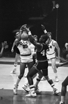 UT-Arlington's Ike Mitchell (right) and Arkansas State's Reggie Gordon battle for are bound. Published in Fort Worth Star-Telegram morning edition February 24, 1984.