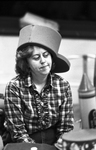 image of a UTA (University of Texas at Arlington) students attending clown class on campus. Here is instructor Rosalie Perryman, "Superstar", watches a lesson on props. Published in Fort Worth Star-Telegram morning edition March 27, 1984.