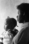 Image shows Arlington Heights track star Mae Helen Neslon,right, holding her 1 year old son, Michael while looking off to the left. Published in Fort Worth Star-Telegram morning edition April 18, 1984.
