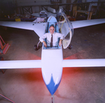 Image of Dr. Jack Fairchild, professor of Aerospace Engineering, in a VariEze plane, a special project of the aircraft design classes at UTA (University of Texas at Arlington). Published in Fort Worth Star-Telegram morning edition morning edition September 23, 1984.