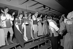 Chamber singers at The University of Texas at Arlington laugh and applaud as the peasants and rapscallions dance at the yearly Feast of Carols, held at the Hereford Student Center or "Hereford Castle." Feast of Carols is a Renaissance evening that features a feast resembling what might have been served in a duke's castle at Christmas.