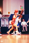 Image of Sam Houston State's Matt Bohan loses the ball after running into UT-Arlington's Lesley Booker. Published in Fort Worth Star-Telegram evening edition January 12, 1990.