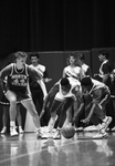 University of North Texas' (UNT) Ray Schufford and University of Texas at Arlington's (UTA) Titus Howard scramble for the ball. Published in Fort Worth Star-Telegram February 3, 1990.