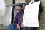Brad Eddins, an AIDS patient at Fort Worth's John Peter Smith Hospital, watches protesters during a rally for better AIDS services at JPS, 03/08/1990