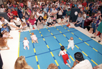 Diaper Derby held at North Hills Mall on March 10. Contests were held for smiling, crawling, and walking. A group of infants are seen here competing in the crawling contest while parents cheered them on.