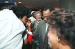 Elzie Odom celebrating with wife Ruby Odom and a group of supporters after winning a city council election in Arlington, Texas by 16 votes to become the first African American city councilman in Arlington.