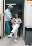 Volunteer Mary Kay Galantowicz comforts Donnie Keck at John Peter Smith Hospital's AIDS clinic, Fort Worth, 05/20/1990
