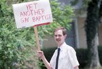 A participant of the Gay Pride Week parade is seen holding a sign that reads "Yet Another Gay Baptist" during the parade held in Fort Worth.