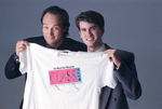 Todd Camp, "Class Acts" graphics editor at the Fort Worth Star-Telegram, gives movie star Jim Belushi a T-Shirt.