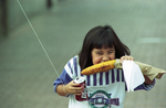 Image of Erin Garcia, 8, munching on an ear of corn during the Mexican Independence Day Festivities during the 12th annual Fiest-In-The-Park. Published in Fort Worth Star-Telegram morning edition September 7, 1990