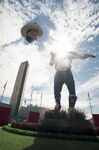Workers assemble Big Tex and lift the head of the 52-foot-tall mascot up with a crane ahead of the State Fair of Texas at Fair Park in Dallas.