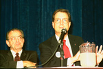 Tom Vandergriff, left, and Arlington Mayor Richard Greene consider proposals for new Texas Rangers Stadium.