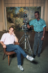 Image shows Chuck Pratt, left and Emilio Howell, right, who will be working on the talk show "UTA Speaks." Howell is host and producer of a new talk show called "UTA Speaks," which originated from the campus of The University of Texas at Arlington. The show is a solution to a problem faced on campus bound dorm dwelling public relations junior. Howell wanted to land a professional internship that translated textbook skills into tangible TV. Published in Fort Worth Star-Telegram evening edition November 2, 1990.