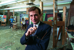 Image of Andrew Guapp, who is the new assistant dead of the Fine Arts department at The University of Texas at Arlington. Pictured in one of the art gallery workshops on campus. Published in Fort Worth Star-Telegram February 21, 1991.