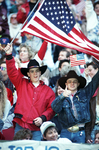 Spirit of America Rally in support of U.S. Operation Desert Storm Troops at Texas Stadium in Irving, Texas. A shot of the crowd with people seen waving American flags.
