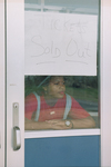 Image shows Gwendolyn Norwood beneath a "sold out" sign at Dunbar High School for the 5A state boys tournament at Austin. Published in Fort Worth Star-Telegram morning edition march 7, 1991.