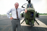 Bell Helicopter Textron president Leonard M. "Jack" Horner leans on an AH-1W Super Cobra at the Bell Helicopter plant in Hurst.