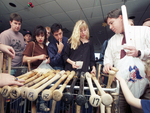 Rangers fans sort through bats at the Texas Rangers Holiday Sale at Arlington Stadium. The sale of shirts, bats, balls, and other items used by players will benefit the team's Grand Slam Christmas program for children in need.