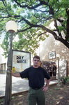 Dry Gulch supervisor, Kyriakos Ioammon, stands outside of the entrance to the bar, located in the basement of The University of Texas at Arlington's University Center building. The bar closed permanently at the night's end due to lack of business. The Dry Gulch had lost over $9,000 that school year and lost more than $12,000 the year prior.