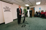 Tarrant County Judge Tom Vandergriff speaks during a ribbon-cutting ceremony at the new AIDS Outreach Center in Arlington. Program coordinator Viktor Anderson watches in the background. Published in Fort Worth Star-Telegram morning edition January 12, 1993.
