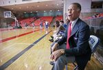 Dunbar High School head coach Robert Hughes is seen communicating with his players during a game against Southwest High School at the Wilkerson-Greines Activity Center in Fort Worth.