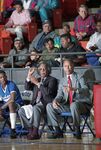 Dunbar High School basketball head coach Robert Hughes, right, is seen seated on the sidelines with assistant coach Leondas Rambo during a game, Dunbar vs. O.D. Wyatt, before Hughes celebrated his 1,000th career basketball win at the Wilkerson-Greines Activity Center in Fort Worth.