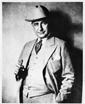 Amon G. Carter pictured holding a cigar and wearing a Shady Oak hat, undated.