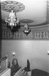 Worth Theater stairway with frieze and chandelier