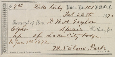 Receipt of lodge dues for Duncan William Henry Taylor.