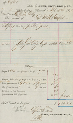 Cotton sales receipts for account of Duncan William Henry Taylor from Ober, Edwards and company.