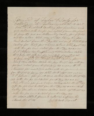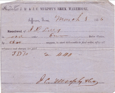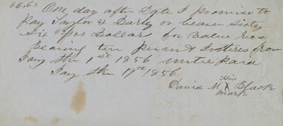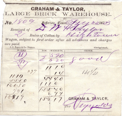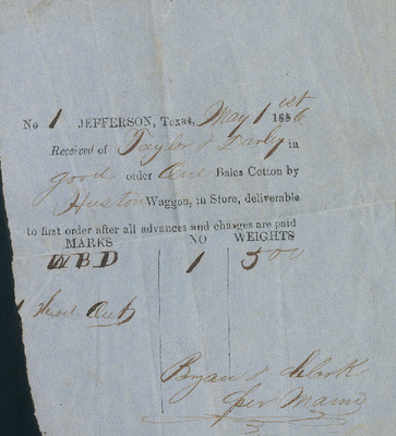 The Taylor and Darby families were among the early pioneers who settled Northeast Texas in the 19th century. They were related by the marriage of Archibald Van Darby's daughter, Leodocia, and Duncan William Henry Taylor. Darby and Taylor were also business partners. They each owned plantations and slaves in and around Mount Pleasant, Daingerfield, and Jefferson, Texas. The Taylor and Darby Family Papers contain correspondence, legal documents, financial documents, and printed materials documenting the activities of the Taylor and Darby families. Materials relate to the running of plantations and mercantile businesses, the Civil War, family and personal matters, and legal matters. The bulk of the collection materials date from 1823-1906.