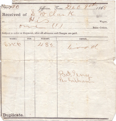 Cotton sales receipt from Clapp Brothers and company in account of Duncan William Henry Taylor