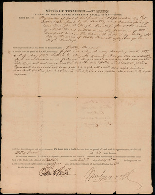 Land Grant to Westley Burnett in the State of Tennessee.