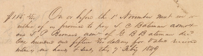Promise to pay note - A. V. Darby to Bateman and Bernard.