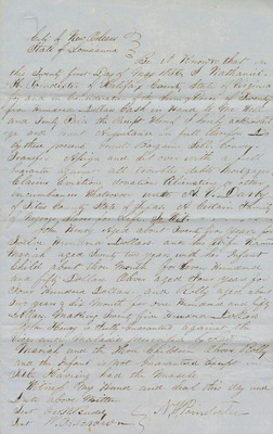 Bill of sale from Nathaniel H. Poindexter to A. V. Darby for payment of the enslaved people, John Henry, Mariah, Oliver, Rolly, and a infant child.