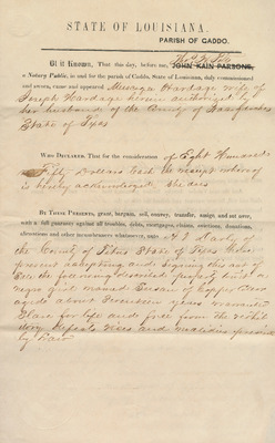Bill of sale from Muscogee Hardage to A. V. Darby for payment of enslaved person, Susan.