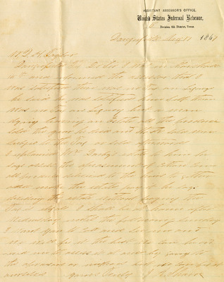 A letter to Duncan WilliamHenry Taylor referencing Archibald Van Darby estate from U. S. Internal Revenue