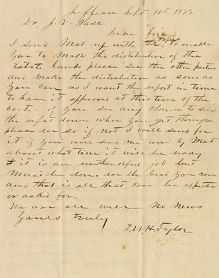 A Letter from Duncan William Henry Taylor to J. V. Nash referencing Bryant Taylor Estate.